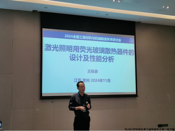 2024年11月15-17日,全国工程材料与机械制造学求研讨会在江苏常州召开,郑州科技学院机械工程学院教工第一党支部书记王桂录以《激光照明用荧光玻璃散热器件的设计及性能分析》为题做学术报告。