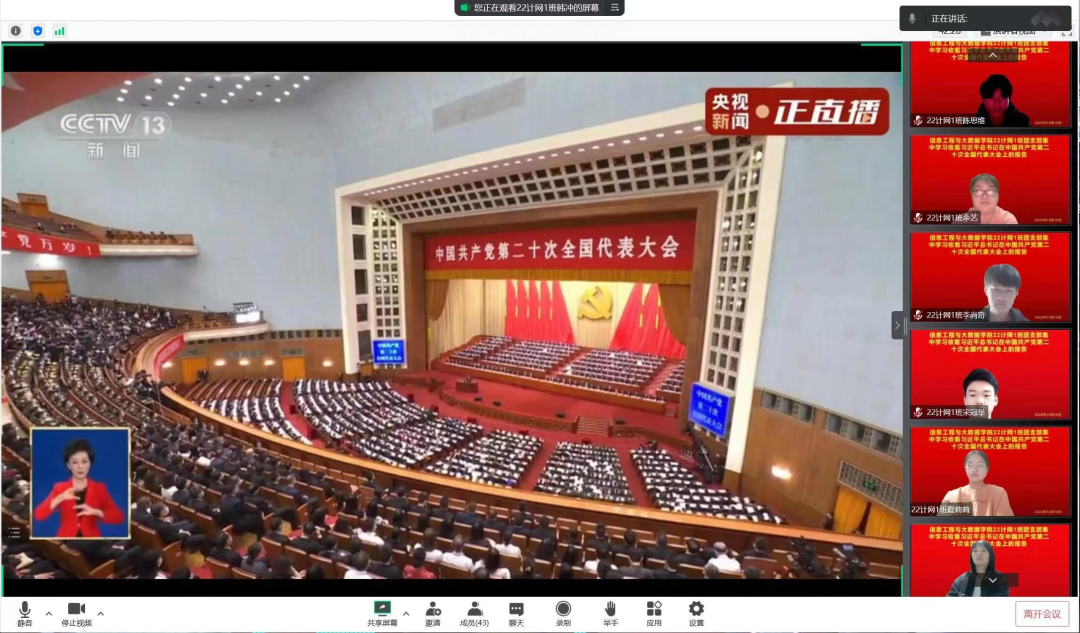 组织各班在线收看党的二十大开幕会并进行探讨