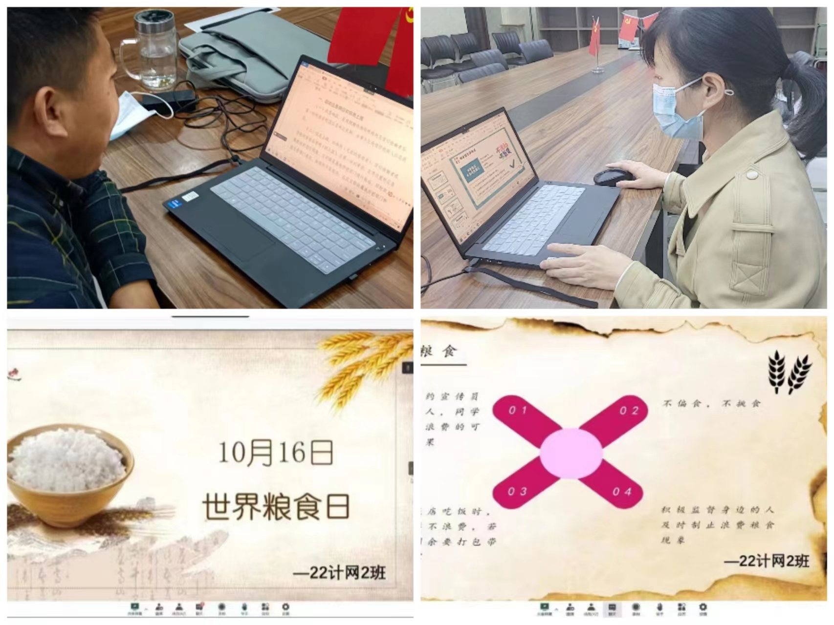 在到校后上网课期间,我院严查网课纪律,确保网课效果。依据学校防控办工作要求,我院学工队伍要求并安排团学干部在现场引导所有学生,进出教学楼,必须扫场所码,一旦有疫情,方便后期流调,实施精准防控;要求教学三级、四级网格长要充分发挥其重要作用,有异常情况及时报告辅导员。安排班长负责组织网课,由班长操作电脑,要求学生全员全程佩戴口罩,教室内保持通风,有条件的安排隔空分开就坐。辅导员老师不定时去教室巡视,确保教学秩序的稳定,确保教学质量和学习效果。为减少聚集,方便学生错峰进餐,学院不同年级实施不同的作息时间,确保学生上课、就餐等都能遵守防疫规定,减少风险,确保平安。当疫情形势严峻复杂时,为减少疫情风险,依据学校工作安排,随即转为在宿舍上网课。期间,辅导员老师带领各班班委团学干部,及时为学生的学习排忧解难,扫清学生的学习障碍,确保学习效果。对于因疫情或其他特殊原因暂缓返校的学生,辅导员及班委团学干部实时保持与其联系,及时解决上课问题,及时进行心理疏导,确保学生居家防疫期间,学业不落下。唯有全力提升学生专业技能,方能为将来实习实训乃至就业创业打下坚实的理论基础。