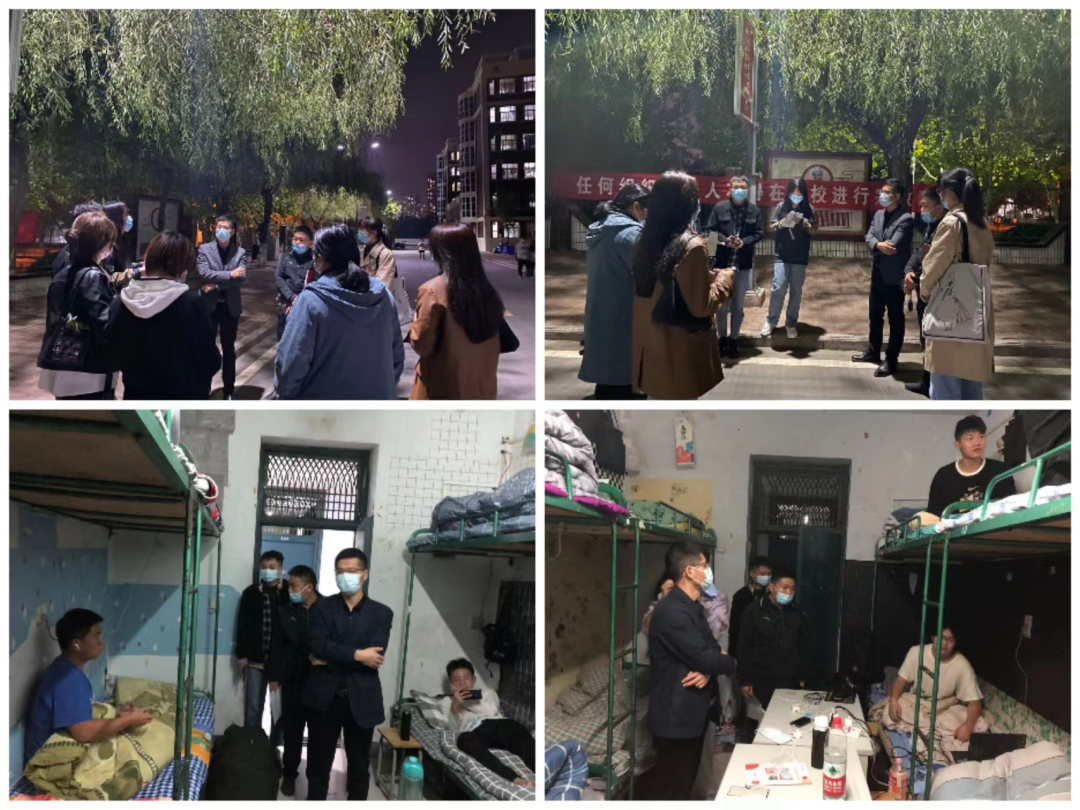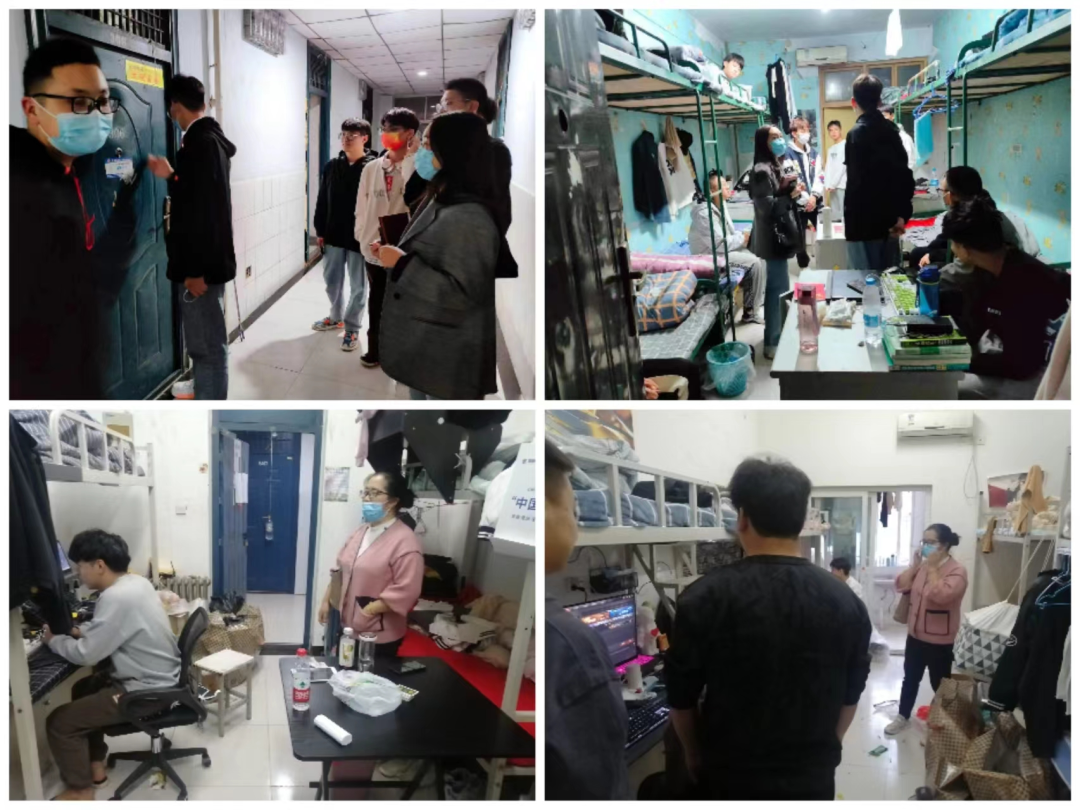 为了确保学生在校生活平安顺利,我院学生队伍严格落实学校关于宿舍网格化管理的工作要求,积极发挥宿舍网格长的职责和作用。坚持每天深入学生宿舍,了解学生生活与学习实际;畅通沟通及反馈渠道,确保学生有问题能够及时反馈,及时解决。无论白天还是黑夜,我院学生工作队伍时刻在行动。他们24小时在岗,用心用情用爱守护全体学生的健康与平安。每天都会在固定的时间地点或不定时的随时发起集结,一旦学生有情况,会第一时间处置;或第一时间上报反馈,并及时跟进和关注,直到困难或问题解决。学生无论是身体受伤或生病,心理情绪异常,人际关系冲突,还是宿舍设施损坏,上网课信号差等等任何方面出现问题,只要及时反馈,学生工作队伍的老师,都会尽全力地去解决,只为守护学生的健康、平安与学业,筑牢校园健康平安的屏障。一声令下,随时集结;一有情况,立刻行动;任劳任怨,无怨无悔。